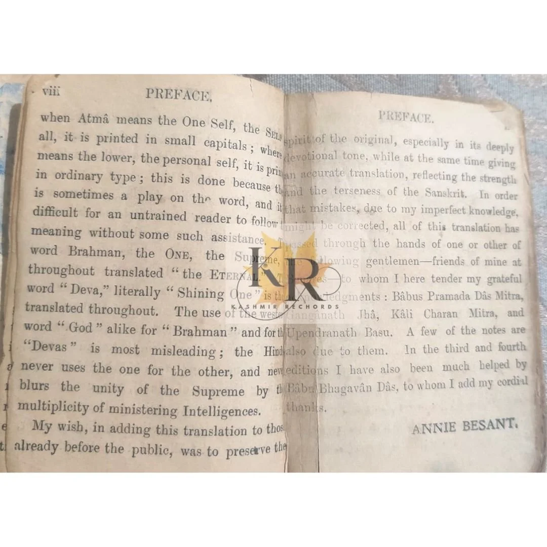 Bhagavad Gita “The Lord’s Song’’, 1908 edition, was authored by none other than the founder of Theosophical Society of India, Madam Annie Besant, who is equally remembered as the First women President of Indian National Congress. Besant was a British socialist, educationist, theosophist, women’s rights and a campaigner for Indian nationalism