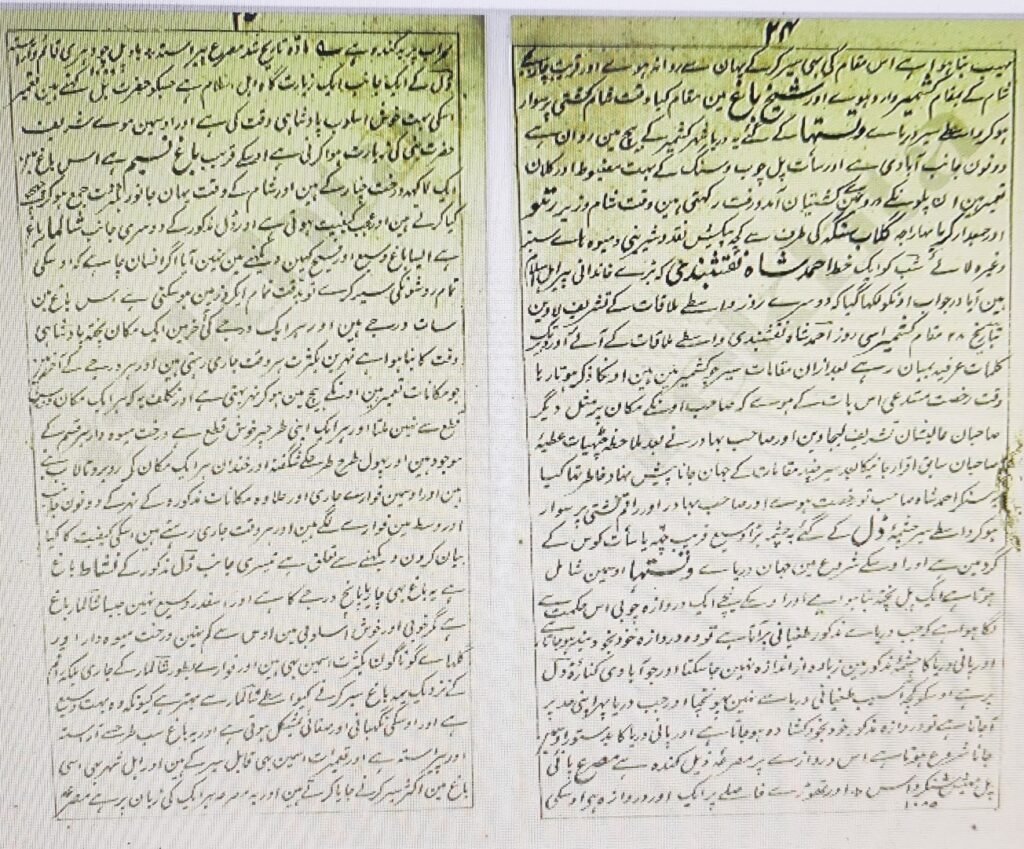 “Sair-e- Kashmir 1278 AH” is written on the cover of the Book having 41 (forty-one) pages. The travelogue is between the periods of April 1847 to June 1847.