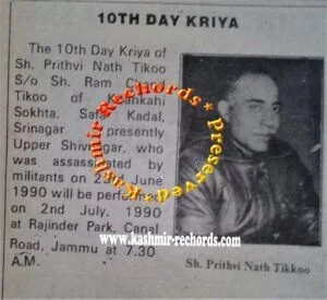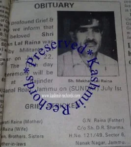 Our Martyrs: Sh Prithvi Nath Tikkoo and Sh Makhan Lal Raina were killed in 1990 only for the reason that they believed in peace, brotherhood, coexistence and represented India in Kashmir. If you are in possession of similar newspaper cuttings/ pics of all those Indians who were killed in Kashmir during the period of turmoil, irrespective of their faith or religion, kindly share with us on kashmirrechords@gmail.com. Kashmir Rechords shall give due and adequate credit to the contributor.