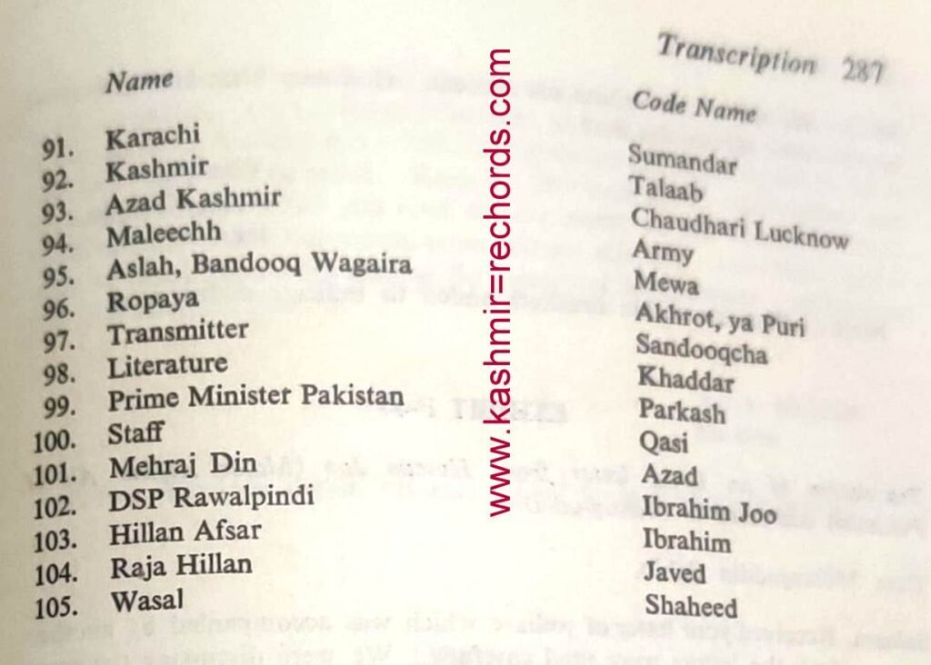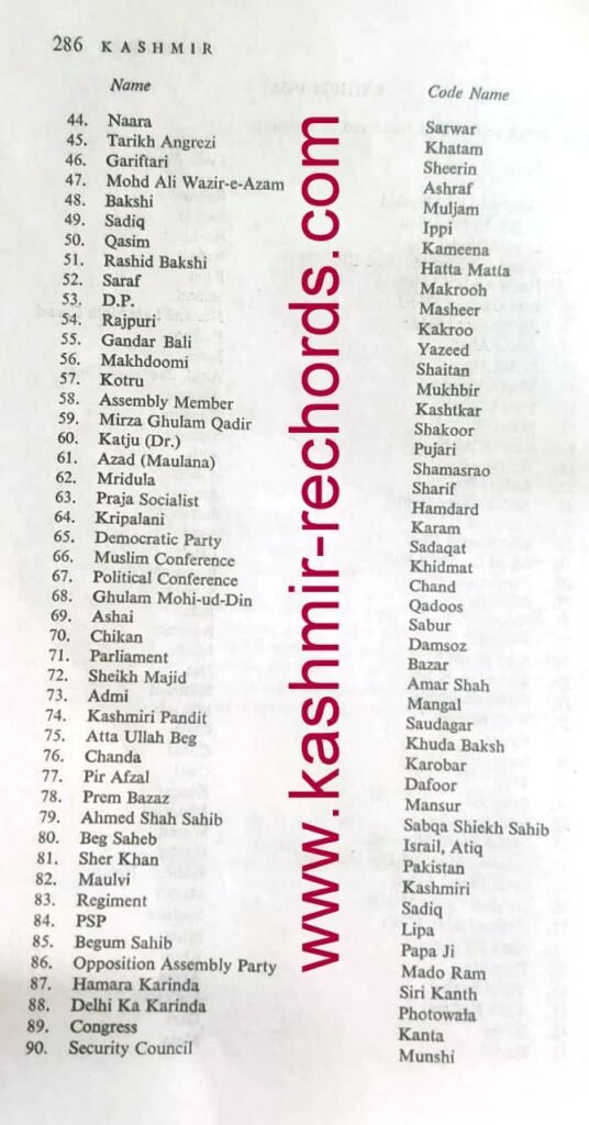 Mullik’s book mentions about 105 such names, which were in use but were deciphered by Indian Intelligence Agencies to smash the Pakistani Plan in the Kashmir Conspiracy Case.