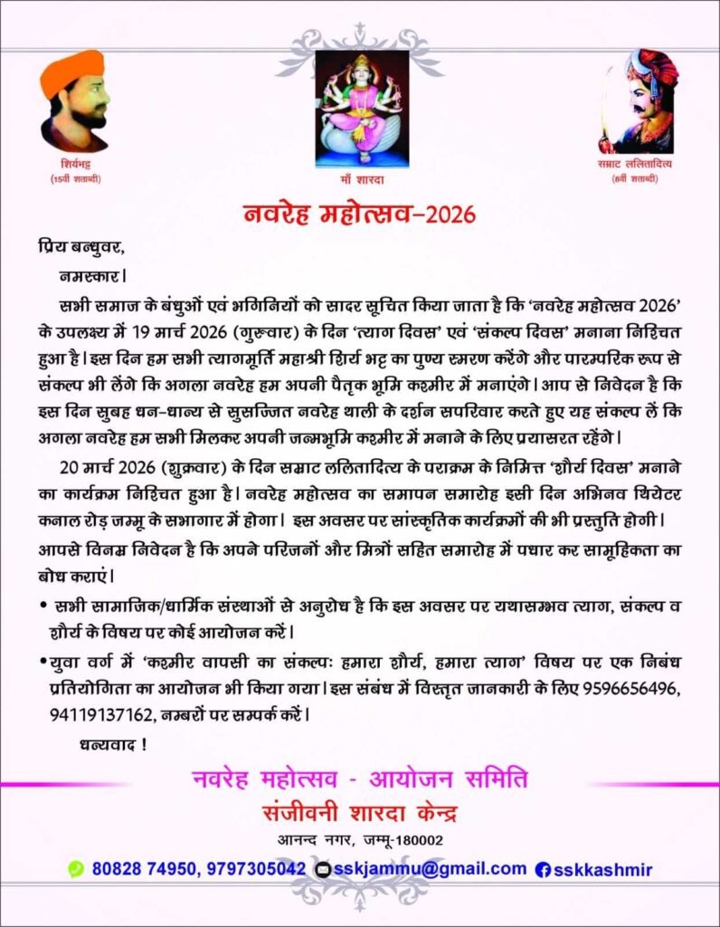 Addressing the media in Jammu on March 18, Convenor Padma Shri Dr. Kashi Nath Pandita described the Navreh Mahotsav as a “poignant homecoming movement”—one that transcends geography. He emphasized that the celebrations will unfold not only in Jammu but across cities in India and beyond, reflecting the shared heartbeat of a scattered yet spiritually anchored community.