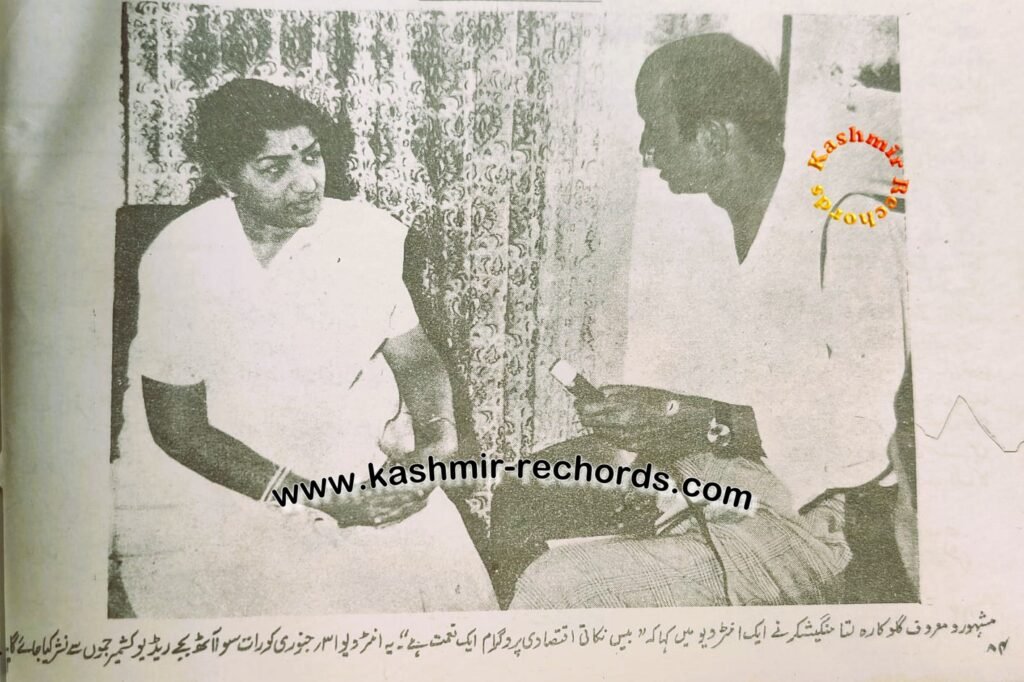 There is a little mention of Lata Mangeshkar’s visit(s) to Jammu and Kashmir. However, records available with Kashmir Rechords trace her one such visit to the City of Temples in January 1976.Radio Kashmir Jammu’s Senior Announcer, Rajinder Gupta had interviewed her—- not for her singing abilities but recording her message on “Bees Nikati Iktisaadi Programme’’ (Twenty Point Programme) launched by the Government of India in 1975. In this interview, Lata Mangeshkar had termed the 20-Point Programme as a bone for the masses as it renewed the Nation’s commitment to eradicate poverty, raising productivity, reducing income inequalities and removing social and economic disparities.