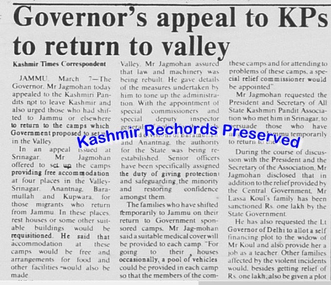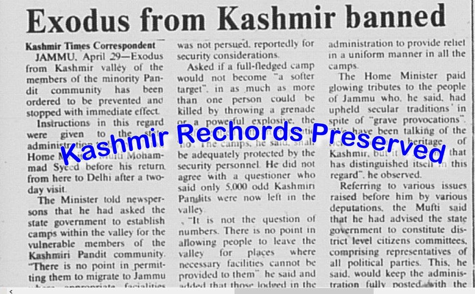 Kashmir Rechords, by reproducing the newspaper clipping of April 30, 1990, seeks to preserve this largely forgotten record—not to reopen old wounds, but to document a critical truth: that the Kashmiri Pandit exodus was never officially intended to be permanent, and that at a crucial moment, the Indian State attempted—however imperfectly—to halt it.