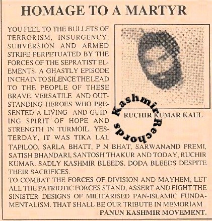 Ruchir Kumar Koul, lived and died for his people in a time when fear silenced many. His martyrdom on June 7, 1994, remains a wound that Bhaderwah remembers each year—but rest of the Country and even majority of his own community, largely forgot!