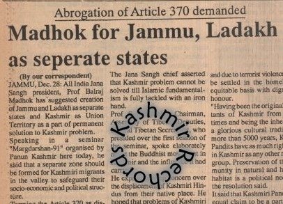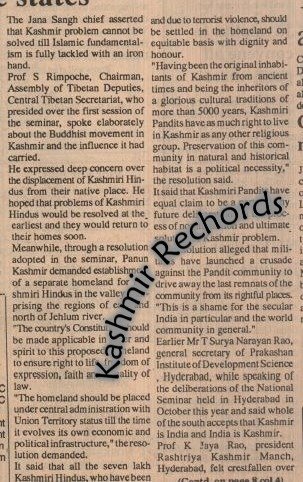 Kashmir Rechords has, over time, gathered substantial documentary evidence—press statements, press coverages, advertisements, posters—that point to an inconvenient truth: the cracks within Panun Kashmir’s leadership were present even before the much-cited Margdarshan of December 28, 1991. That event, often projected as a moment of unity, in fact deepened internal rivalries. The presence of Balraj Madhok did little to bridge differences; if anything, it exposed competing ambitions.