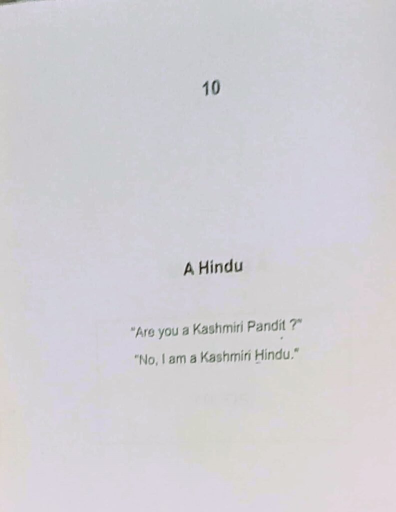 One of his cameo is directed towards the dubious philosophy nurtured by the terrorists, who indiscriminately killed several Kashmiri Pandits and Kashmiri Muslims.