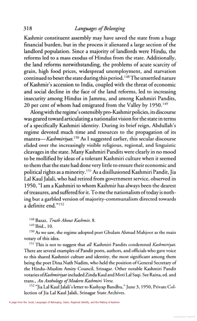 As per historian Christopher Snedden, Kashmiri Pandits made up about 6% of the Valley’s population in 1947. However, post-independence policies such as land redistribution and socio-political upheaval led many to further migrate to other parts of India. By the 1950s, their proportion fell to just 5% of the Valley’s population, says Christopher Snedden in his book “Understanding Kashmir and Kashmiris”.