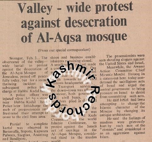 One of the earliest examples of Kashmir reacting to international developments occurred in August 1969, when a fire broke out at the Al-Aqsa Mosque in Jerusalem.