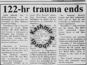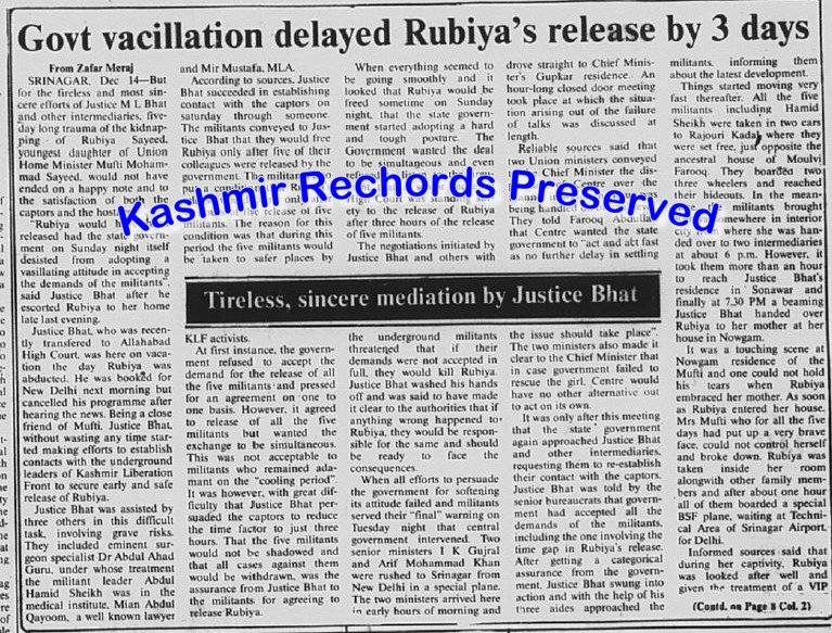 Thanks to an archival newspaper cutting unearthed by Kashmir Rechords : http://www.kashmir-rechords.com—a detailed byline story by the journalist Zafar Meraj, published in Kashmir Times on December 15, 1989—we finally revisit the tense back-channel dealings that shaped this saga.