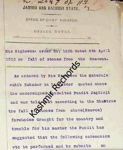 The Government of Jammu and Kashmir, through its Department of Archives, Archaeology and Museums, still holds rare and precious files documenting these events. Titled simply yet ominously—“Fall of Stones” and “Fall of Snakes from Heaven”—the records continue to fascinate researchers and the public alike.