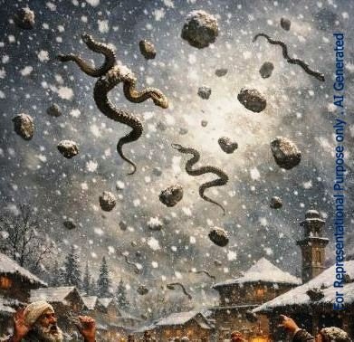 The first incident dates back to December 1912, when residents of Shopian in South Kashmir reported a chilling sight: stones falling from the sky amid snowfall. Alarmed villagers conveyed the incident to the royal court.